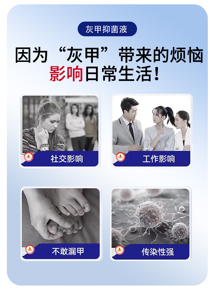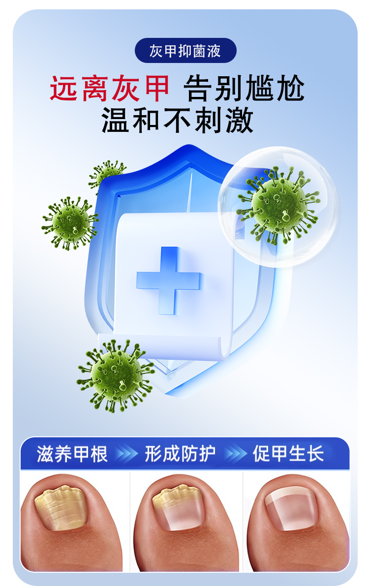 灰趾甲抑菌液,是今世康廠家專為灰趾甲研制,用于腳指甲灰趾甲、指甲萎縮、凹凸不平等指甲問題,給指甲多重呵護,遠離灰甲,抑菌液生產廠家,支持不同材質、規格、形狀、包裝設計,滿足多種渠道需求的抑菌液體加工一站式oem貼牌定制服務。
