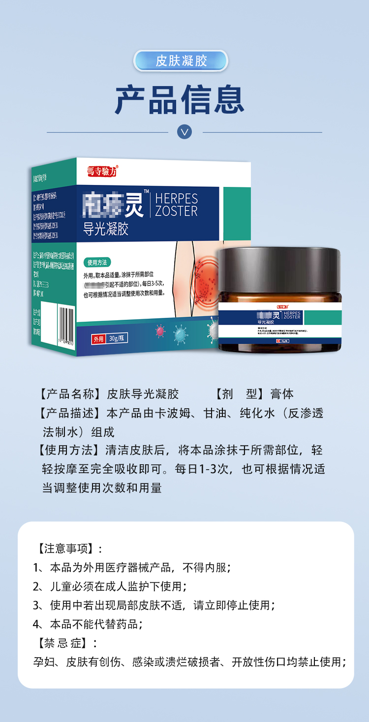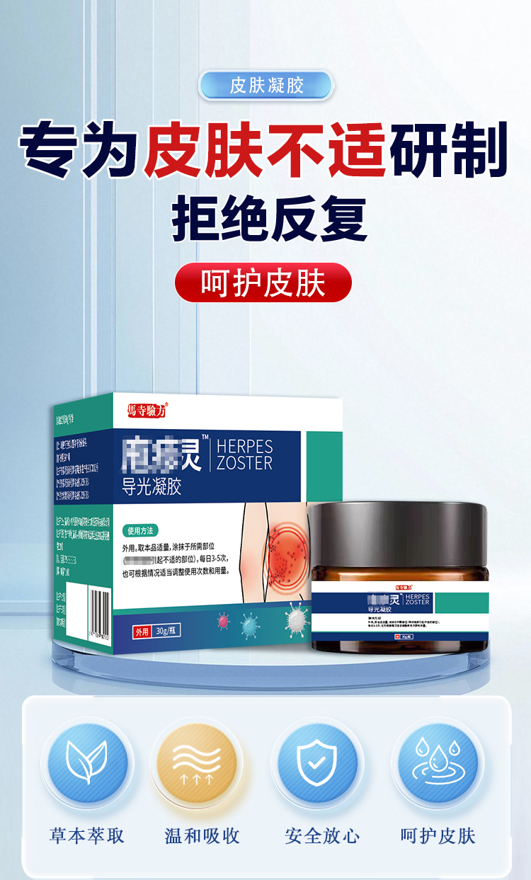皰疹靈導光凝膠,多種草本原材,適用于皮膚不適,使用簡單,適量均勻涂抹,源頭廠家,加工定制