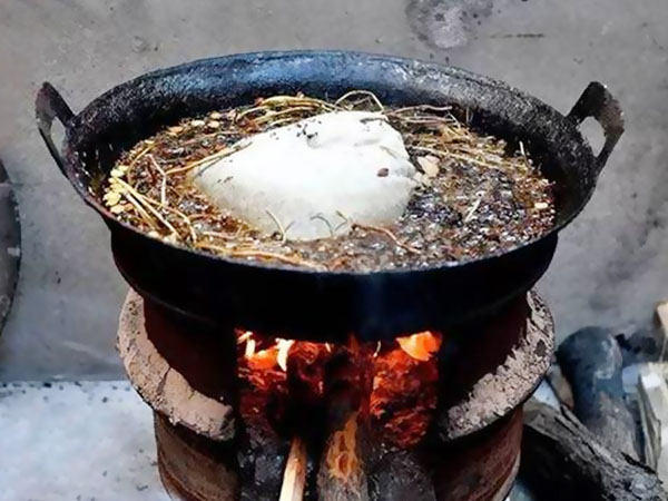 煉油是黑膏藥制作基質(zhì)的關(guān)鍵,煉油時要講究火候,不同的煉油程度都會影響到膏藥的“老”“嫩”品質(zhì)。
