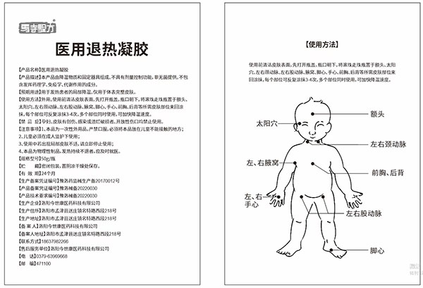 退熱凝膠,新型冷敷理療及物理降溫類,是用來減輕由普通感冒、流行性感冒或其他原因引起的發燒情況。特別適用于低燒38℃以下的物理降溫及高燒就診過程的應急物理降溫。同時也是夏季消暑及高溫作業時的常備產品。